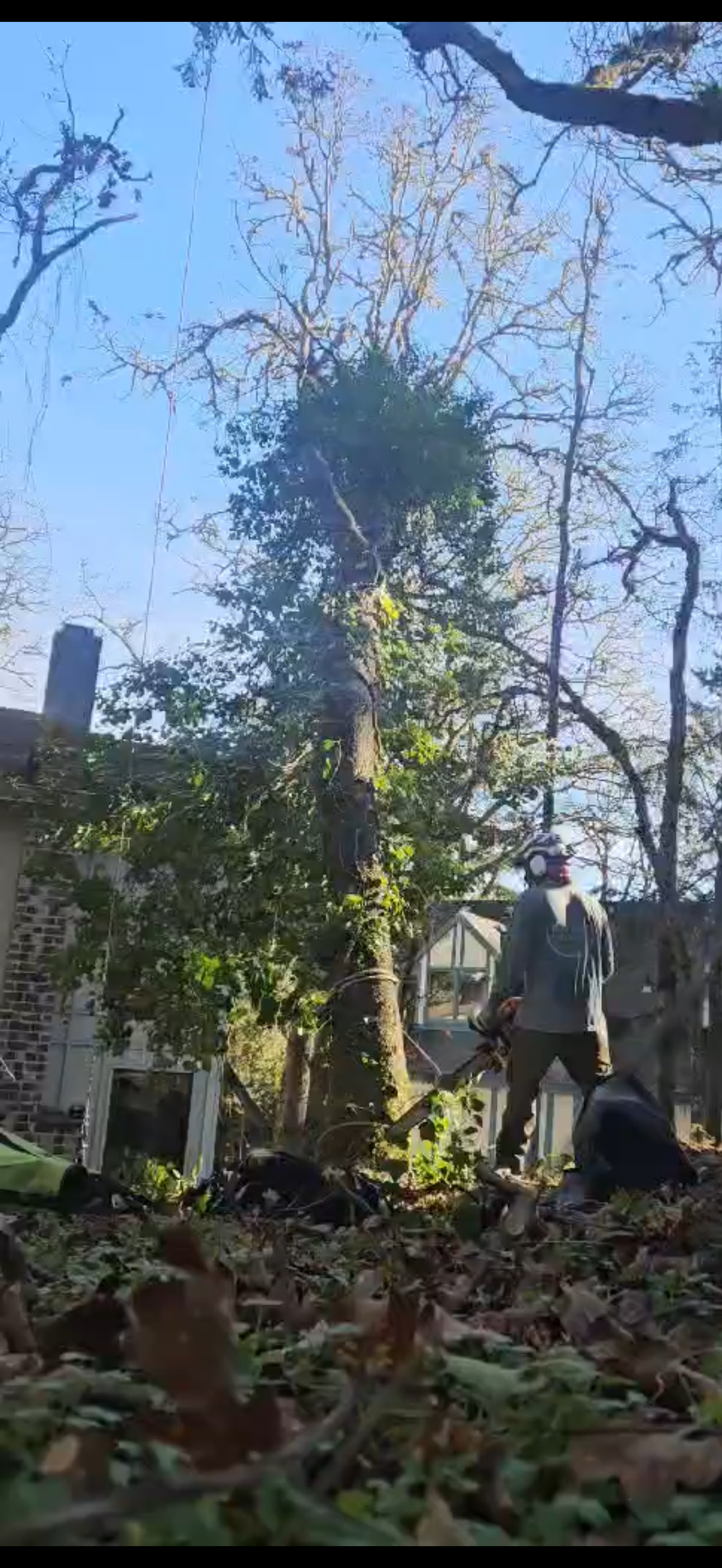 Tree responds with asymmetrical canopy thinning.
