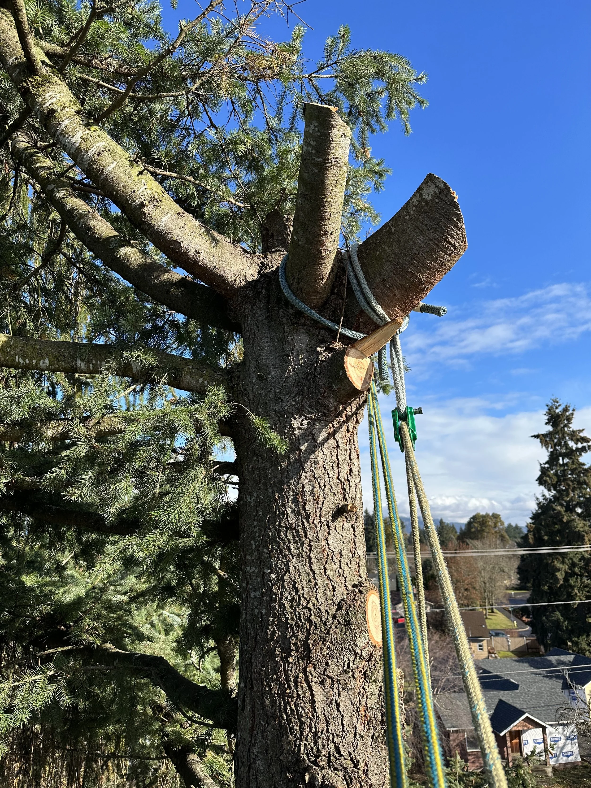 Removing too much canopy reduces the tree’s ability to produce energy, causing stress and decline.